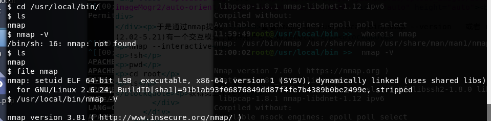 在这个靶机中,nmap很鸡贼地藏在/usr/local/bin/路径下。