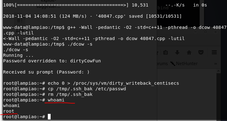 Lampiao(dirtycow) linux-exploit-suggester.sh dirty cow,exp :https://www.exploit-db.com/download/40847.cpp owasp渗透测试指南读后感 上一篇 Mr-robots(escalation privilege) 下一篇