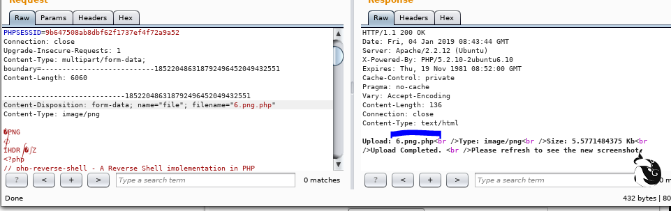 替换图片内容为php-reverse-shell,名称后缀改为6.png.php