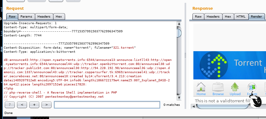 尝试替换为php反弹脚本,提示不是有效的torrent文件。