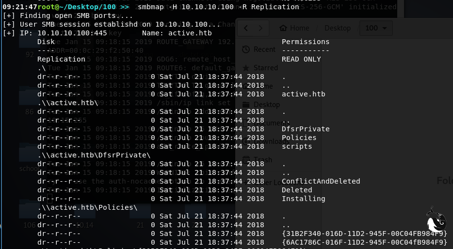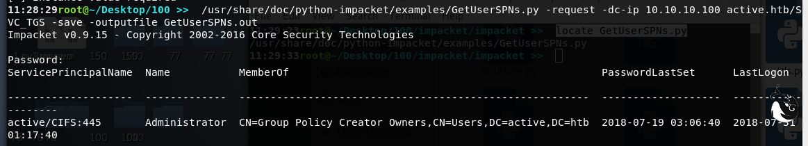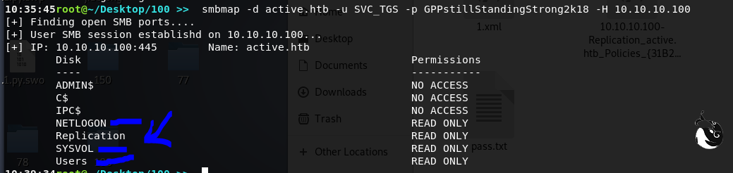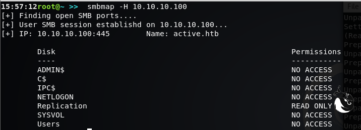 53/tcp open domain Microsoft DNS 6.1.7601 | dns-nsid: |_ bind.version: Microsoft DNS 6.1.7601 (1DB15D39) 88/tcp open kerberos-sec Microsoft Windows Kerberos (server time:2019-01-0204:44:03Z) 135/tcp open msrpc Microsoft Windows RPC 139/tcp open netbios-ssn Microsoft Windows netbios-ssn 389/tcp open ldap Microsoft Windows Active Directory LDAP (Domain: active.htb, Site: Default-First-Site-Name) 445/tcp open microsoft-ds? 464/tcp open kpasswd5? 593/tcp open ncacn_http Microsoft Windows RPC over HTTP 1.0 636/tcp open tcpwrapped 3268/tcp open ldap Microsoft Windows Active Directory LDAP (Domain: active.htb, Site: Default-First-Site-Name) 3269/tcp open tcpwrapped 5722/tcp open msrpc Microsoft Windows RPC 9389/tcp open mc-nmf .NET Message Framing 47001/tcp open http Microsoft HTTPAPI httpd 2.0 (SSDP/UPnP) |_http-server-header: Microsoft-HTTPAPI/2.0 |_http-title: Not Found 49152/tcp open msrpc Microsoft Windows RPC 49153/tcp open msrpc Microsoft Windows RPC 49154/tcp open msrpc Microsoft Windows RPC 49155/tcp open msrpc Microsoft Windows RPC 49157/tcp open ncacn_http Microsoft Windows RPC over HTTP 1.0 49158/tcp open msrpc Microsoft Windows RPC 49169/tcp open msrpc Microsoft Windows RPC 49171/tcp open msrpc Microsoft Windows RPC 49182/tcp open msrpc Microsoft Windows RPC Service Info:Host: DC; OS: Windows; CPE: cpe:/o:microsoft:windows