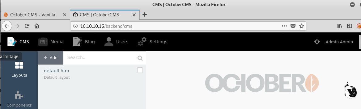trying1:检查web config文件,查找口令 grep -R pass . OctoberCMSPassword!! python -c 'import pty; pty.spawn("/bin/bash")'