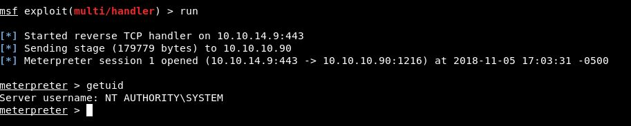 一个shell就马上被SYSTEM接收到。