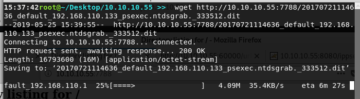 同样的方式,把另一个文件用ntds.dit作为文件名传送到本地