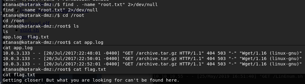 .wgetrc提示发送/root/root.txt,于是133就将本机的机密文件发送给了10.0.3.1