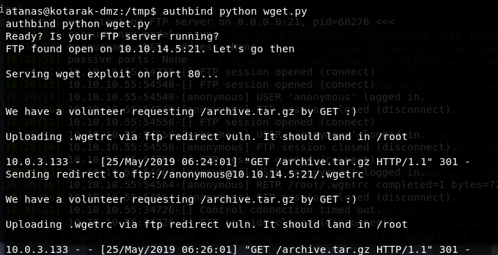 将exp修改ftp的ip为kali的,然后上传至10.10.10.55。