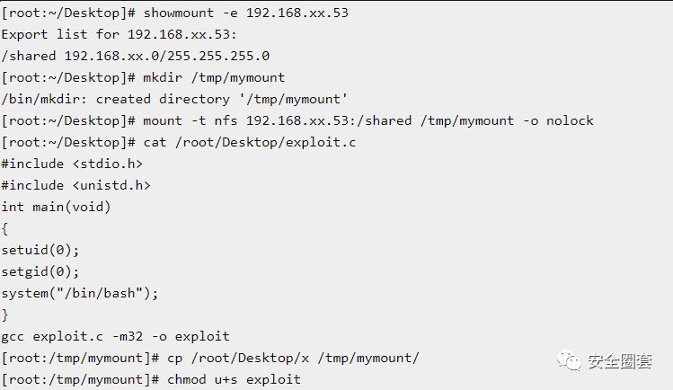 NSF可写,可以创建一个可以行文件,用setuid(0)获得root权限: