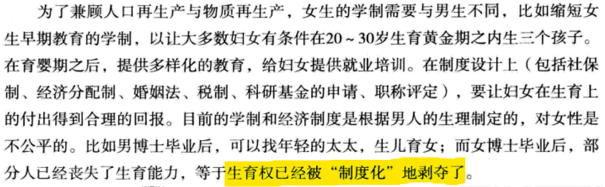 那么他的根本目的是什么,他的拙劣的理由”女生的学制需要与男生不同“都是掩盖一个事实,他认为女性就不应该读太多书,应该别上学了早点结婚生子。