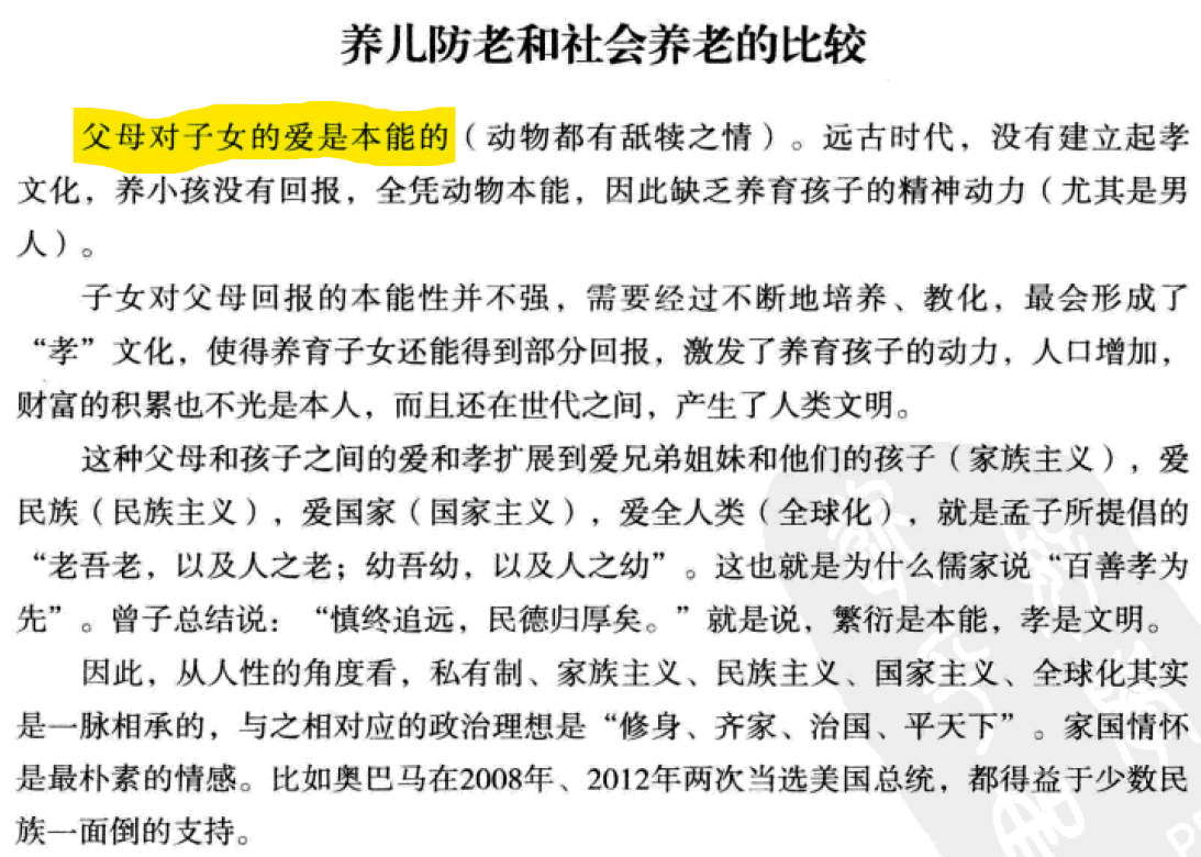 在第九章中,易富贤说“不孝有三,无后为大”。把无后翻译为了没有后代。