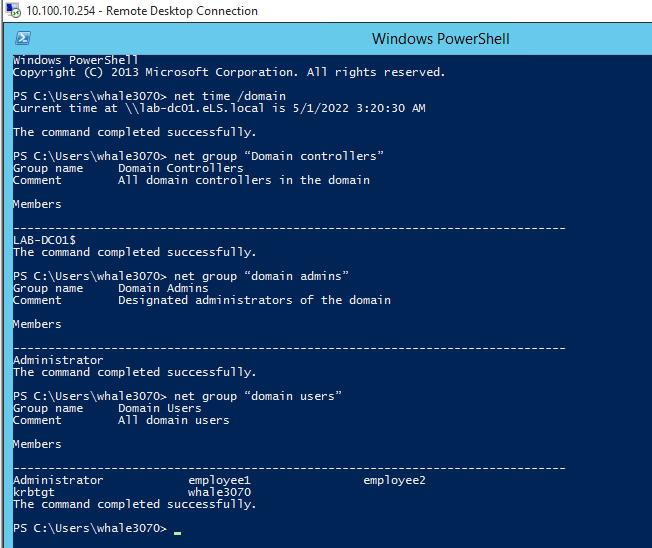 | Administrator:500:aad3b435b51404eeaad3b435b51404ee:42fa68a64510c74b514cf70f46728718::: Guest:501:aad3b435b51404eeaad3b435b51404ee:31d6cfe0d16ae931b73c59d7e0c089c0::: krbtgt:502:aad3b435b51404eeaad3b435b51404ee:f4f88438c968756e75252ca4056b0607::: employee1:1104:aad3b435b51404eeaad3b435b51404ee:89551acff8895768e489bb3054af94fd::: employee2:1604:aad3b435b51404eeaad3b435b51404ee:89551acff8895768e489bb3054af94fd::: LAB-DC01$:1001:aad3b435b51404eeaad3b435b51404ee:2159dc0dfefa42e24c36c5ed00dc194d::: ELS-DB$:2102:aad3b435b51404eeaad3b435b51404ee:ce8c2f6528b04f6f7719f17f7b415110:::