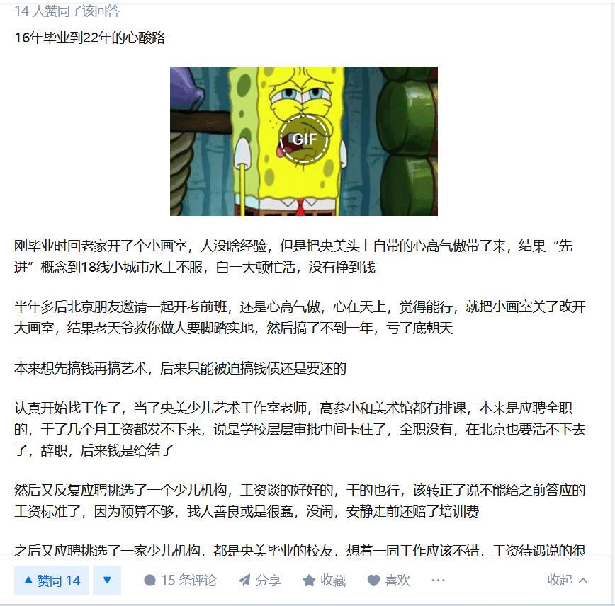 女生还好,自带性价值和生育价值。男生学艺术,尤其是自身阶级不高的男性,又学了无法赚钱的纯艺,那真的是死局。