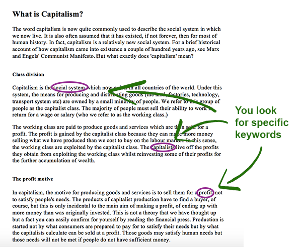 当你阅读问题时,识别关键词并扫描文本。这样你会更快地找到答案。