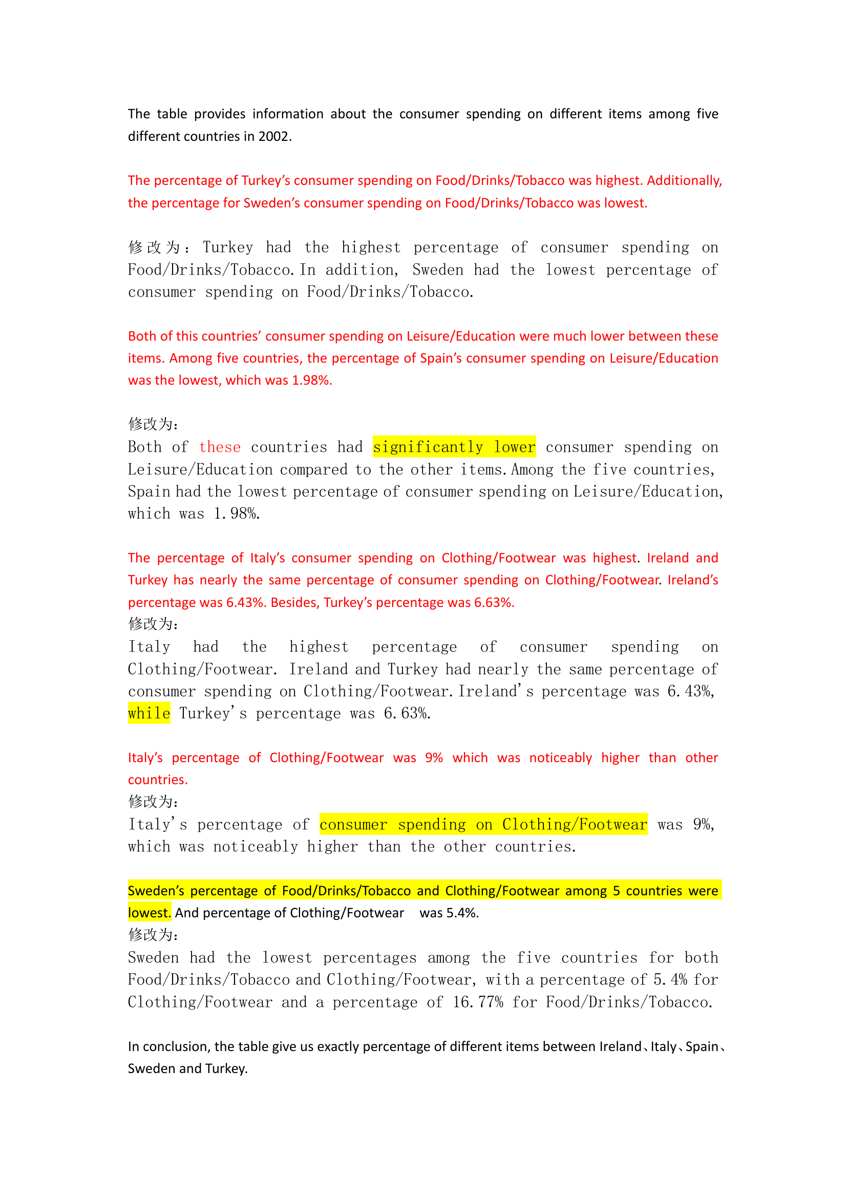 In conclusion, the table give us exactly percentage of different items between Ireland、Italy、Spain、Sweden and Turkey.