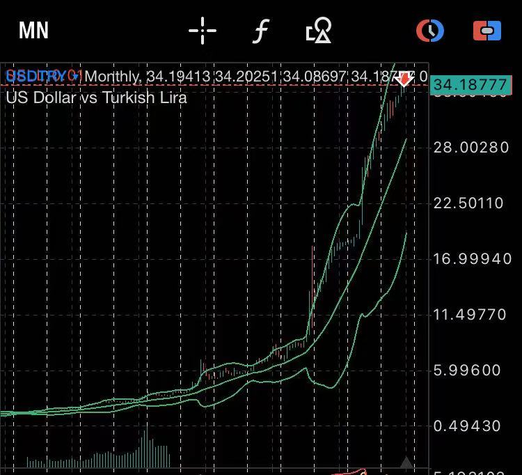 我来解释一下这张图。这张图展示了最近这些年,美元兑换土耳其里拉的汇率走势。