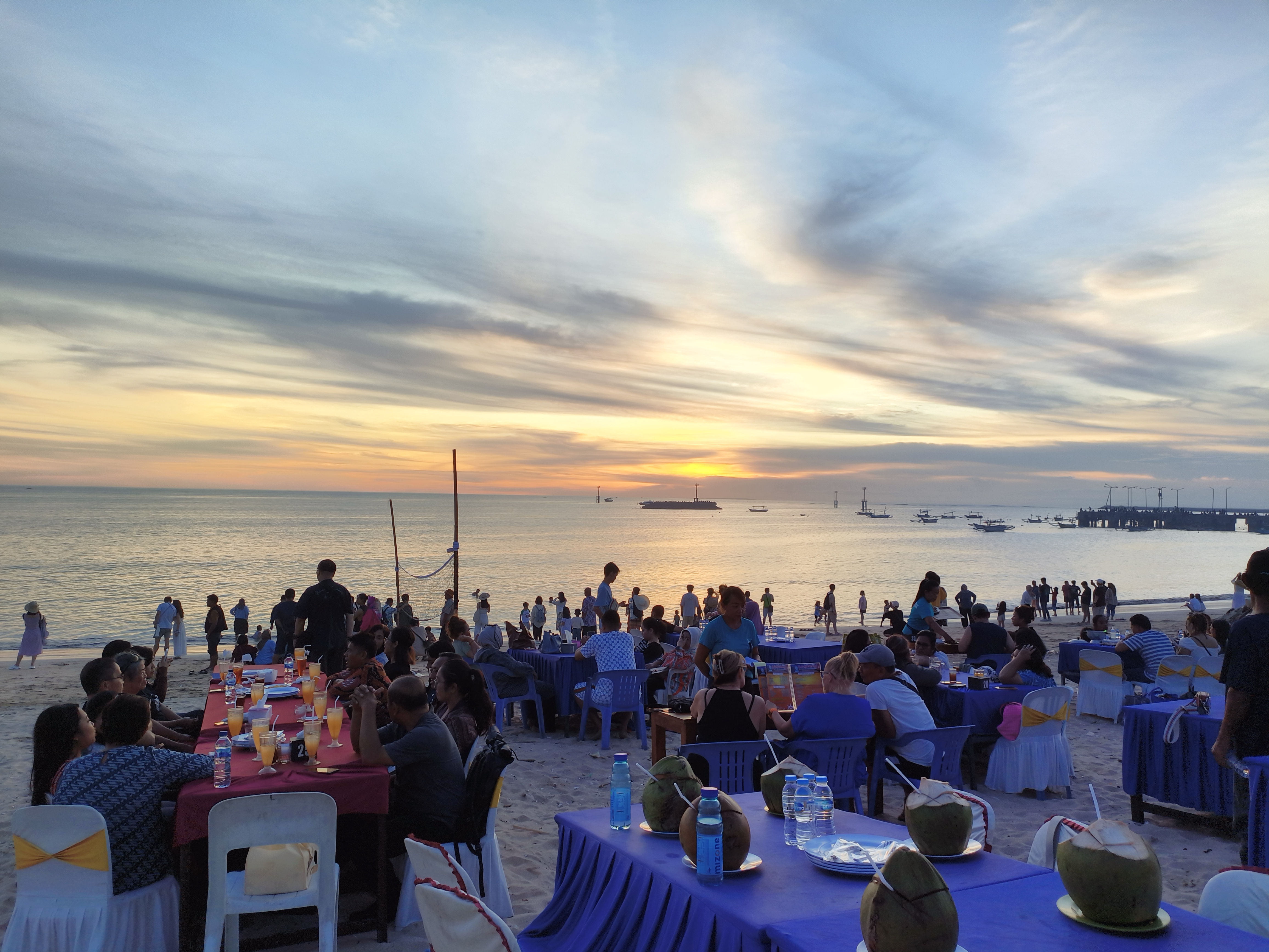 在金巴兰沙滩吃晚餐的时候,烤鱼是真难吃啊,椰子都酸了吧唧的,不知道开口多久了。 喝了两口没敢再喝了,怕窜稀。