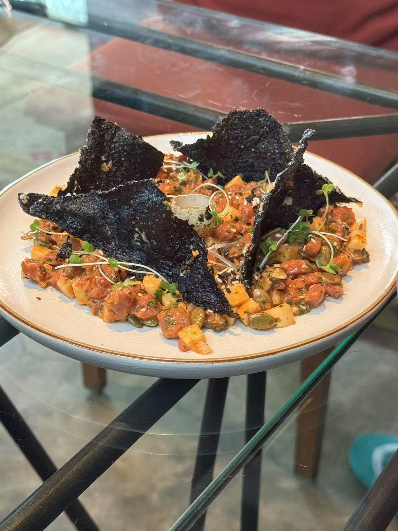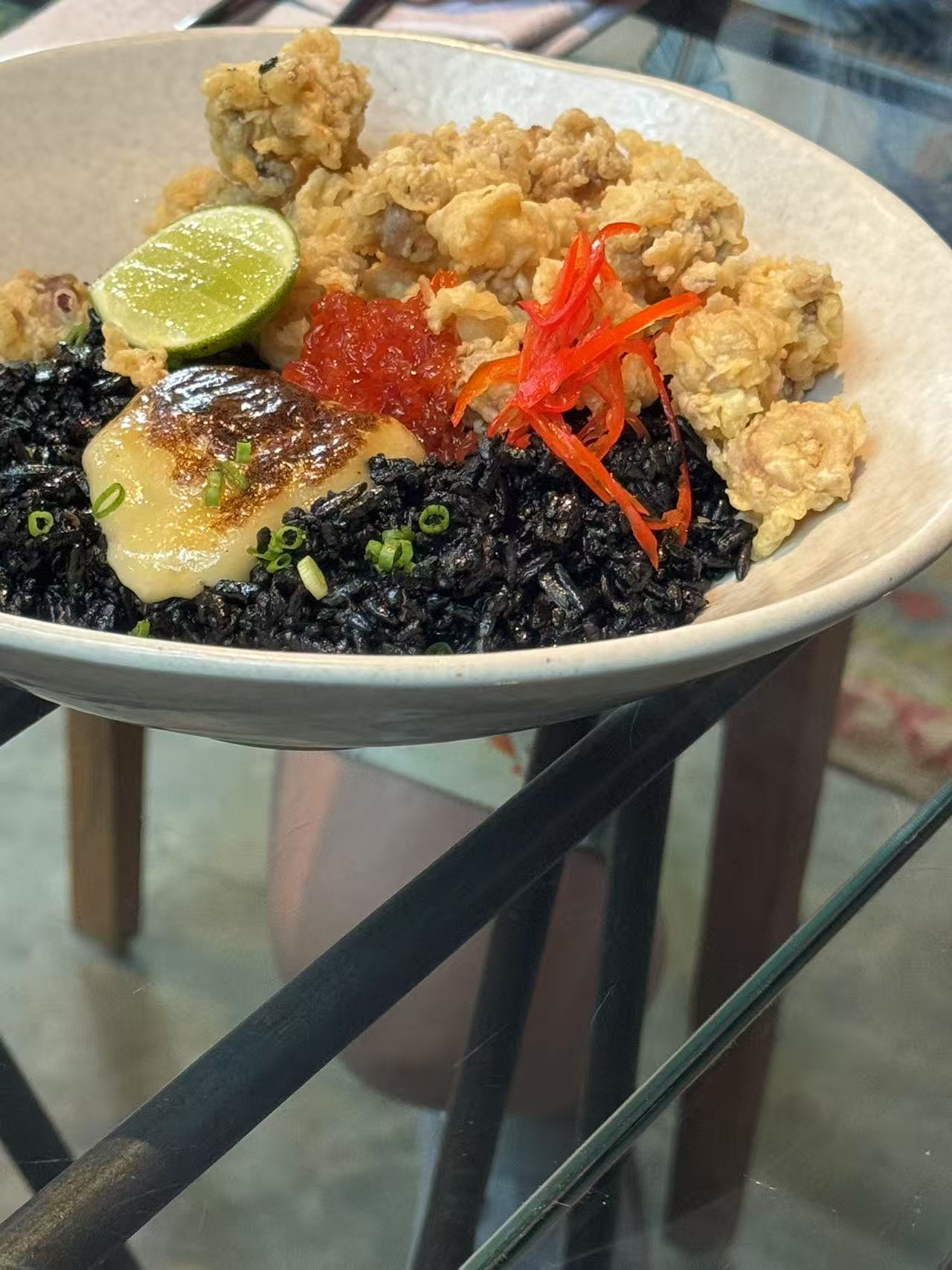 中午吃的是脏鸭餐,味道很棒。个人比较挑食,我全都吃完了。 烤鸭脆脆的,酱料是酸辣的。