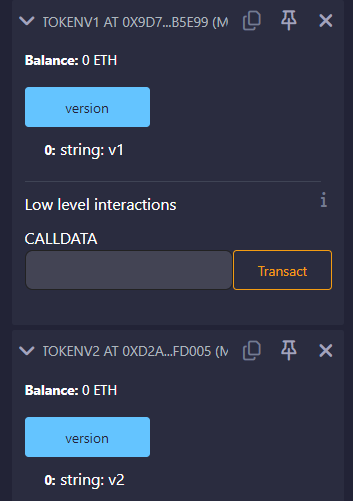 现在调用 TokenV2.version() 返回 “v2”,而 TokenV1.version() 仍返回 “v1”。