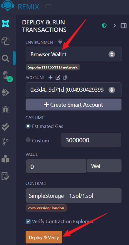 - 在 Remix 右侧「Deploy & Run Transactions」面板的「Deployed Contracts」区域,会显示合约实例及 合约地址(如