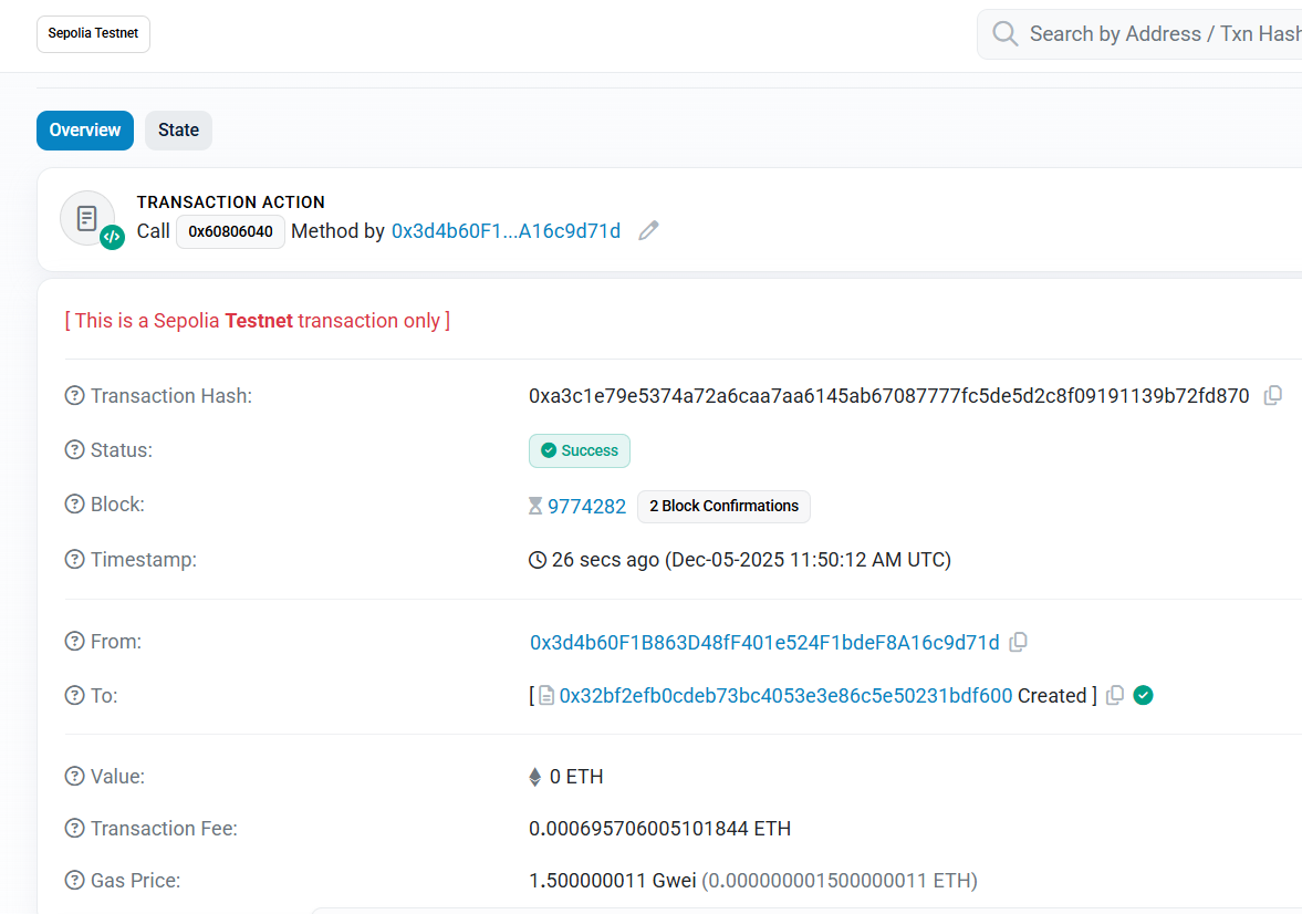 部署交易在 MetaMask 确认后,需先验证合约是否成功上链,并收集关键信息: