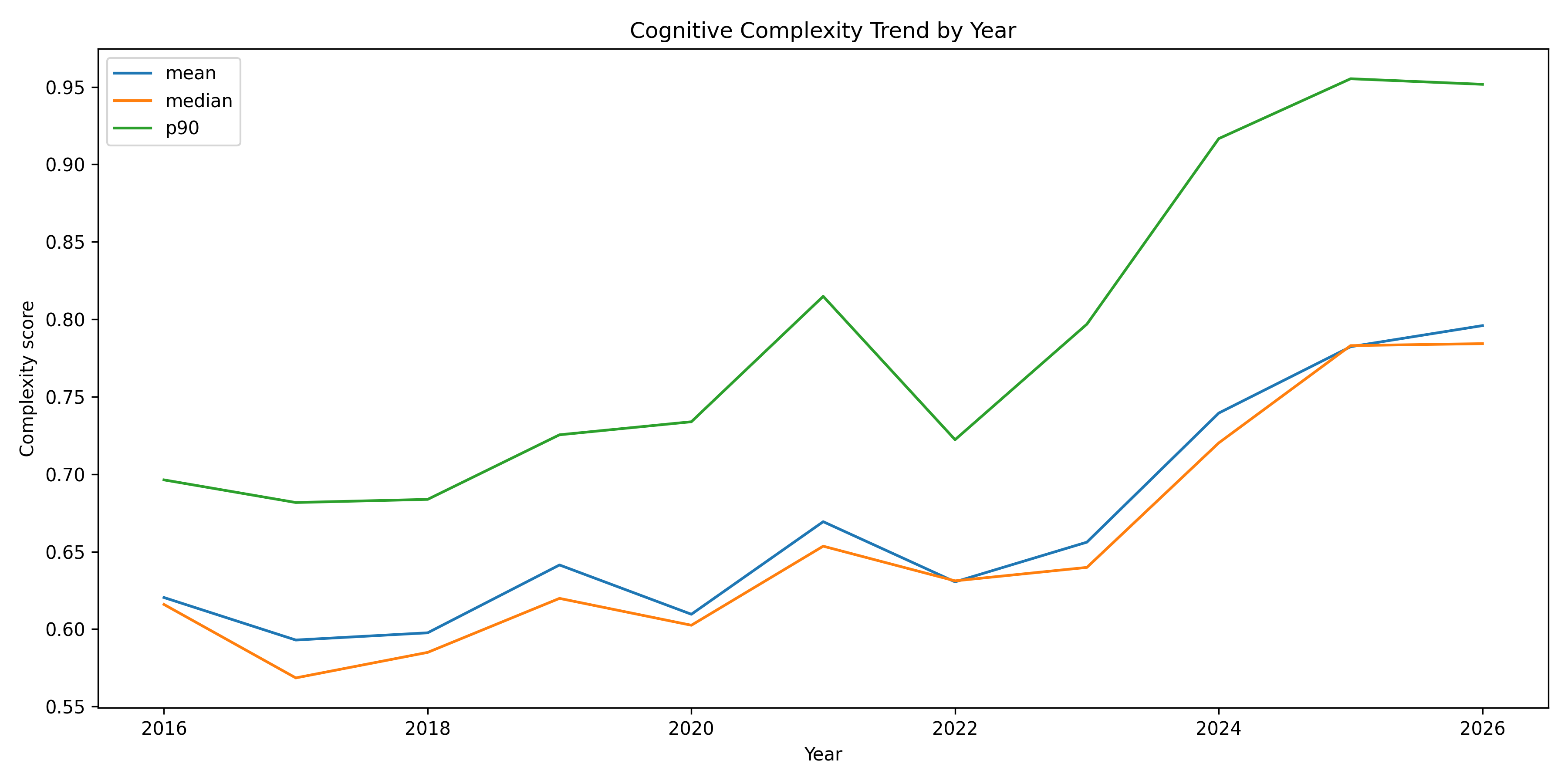 用算法测“认知复杂度随年份变化”
