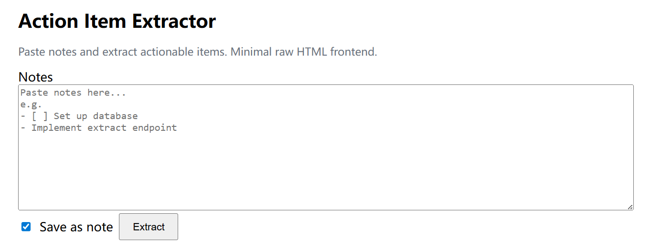 前端只会发 HTTP 请求(例如 POST /action-items/extract 之类),请求打到 FastAPI 路由,路由里再 import 并调用 extract.py 里的函数。